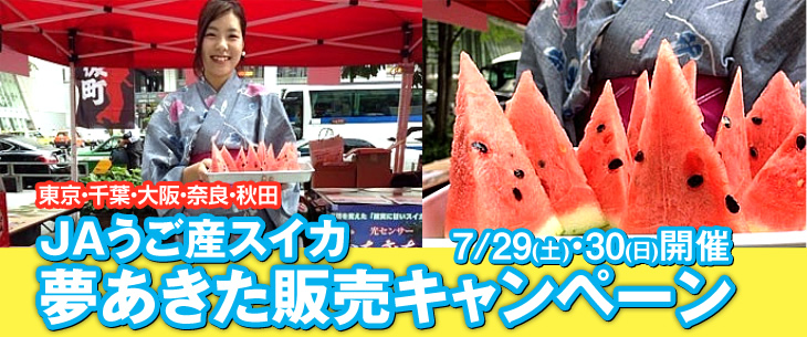 平成29年 7/29(土)・30(日) 東京・千葉・大阪・奈良・秋田JAうごスイカ販売キャンペーン開催のお知らせ