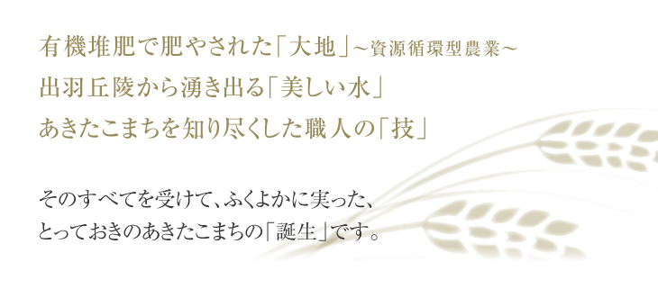 当JAは本当に小さなJAですが、米づくりに適した土づくり(資源循環型農業)と、地域全体で培った米生産技術で、高品質あきたこまちの産地として認められるようになりました。